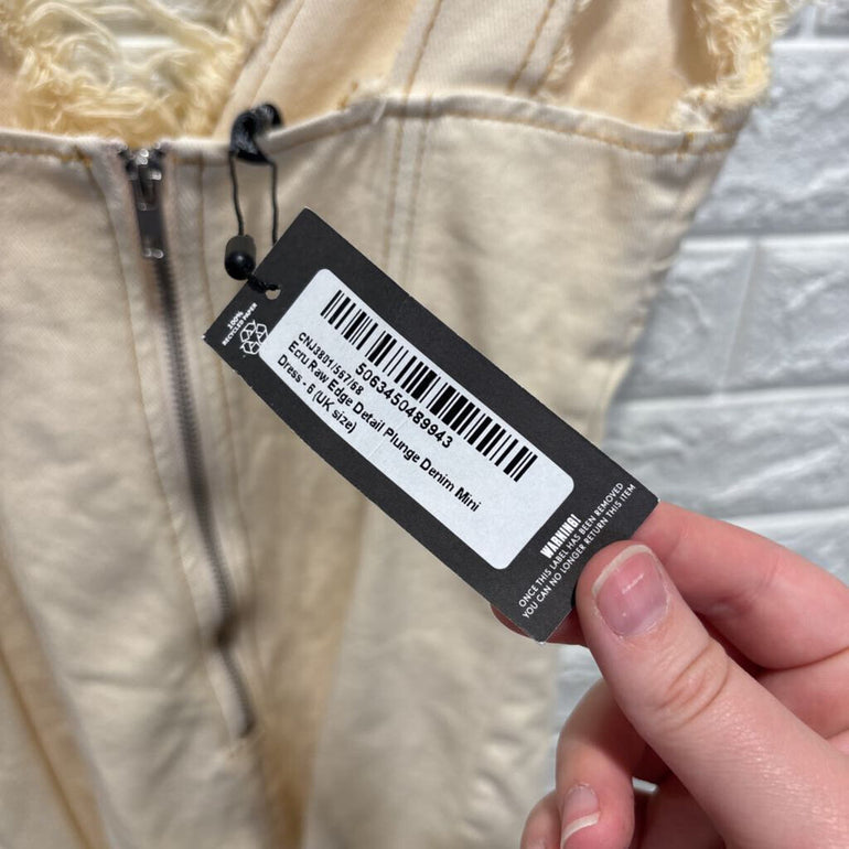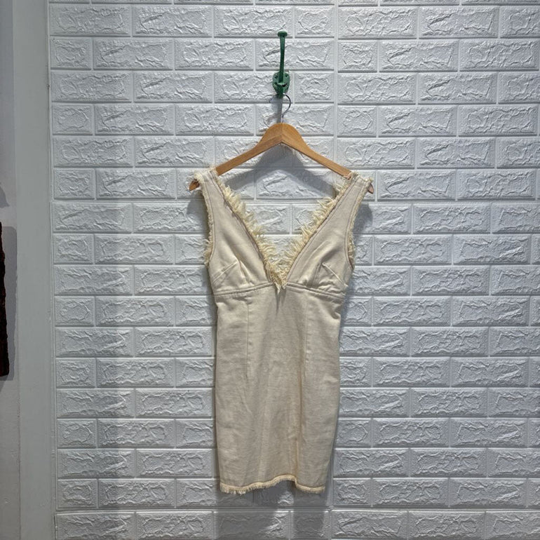 Raw Edge Detail Plunge Denim Mini Dress NWT