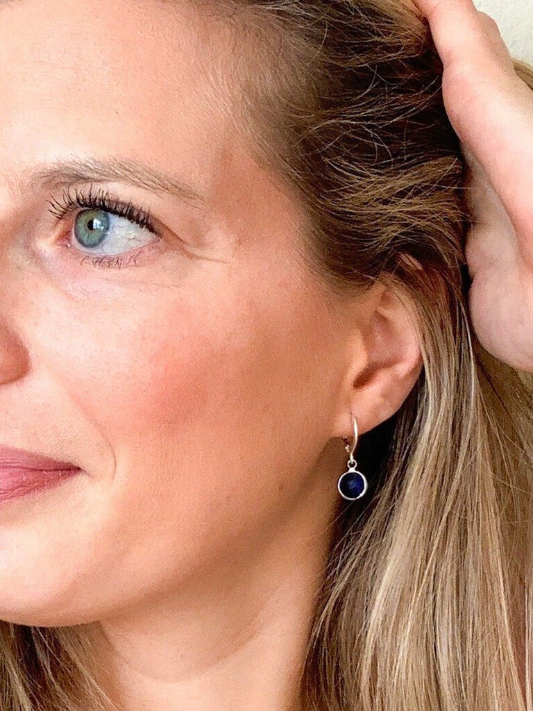 These Birthstone huggie earrings are hypoallergenic, easy to put on, and very light weight. THE LITTLE DETAILS: ? 12mm Hoops in Sterling Silver or Silver Dipped ? Glass dangle charm size 8mm ? Hoops are Lead and Nickel Free ? Comes in a pair