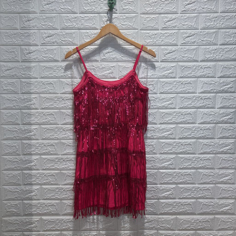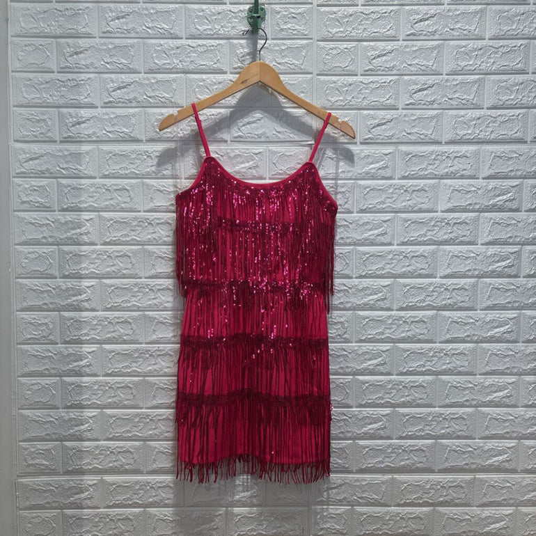 Sleeveless Sequined Fringe Mini Dress