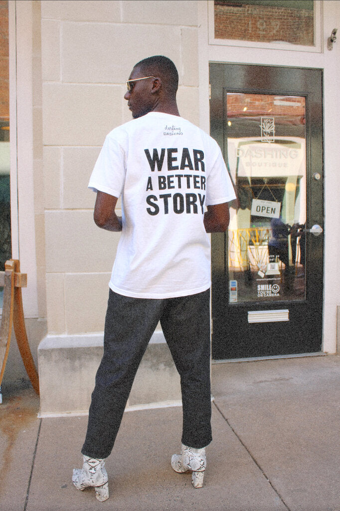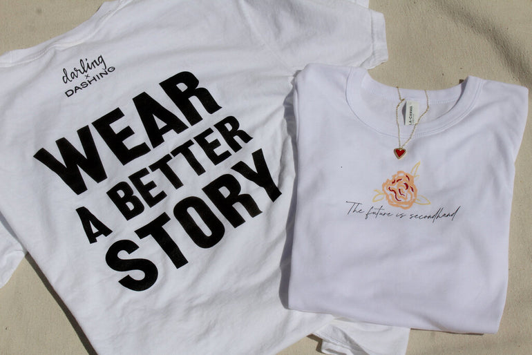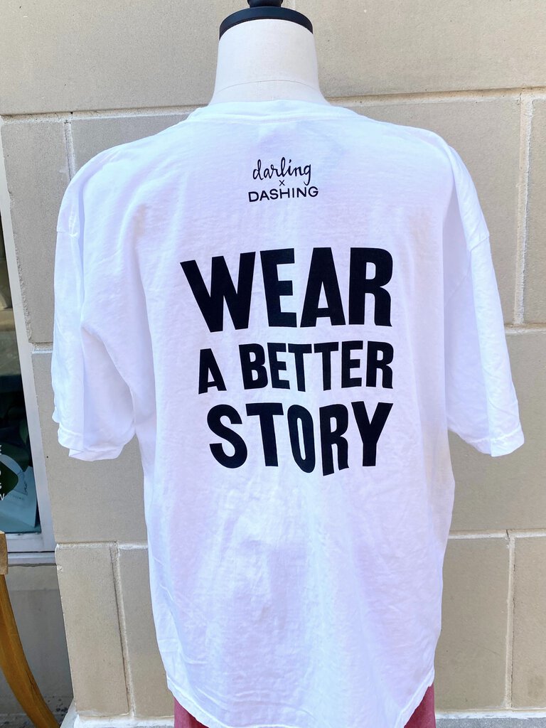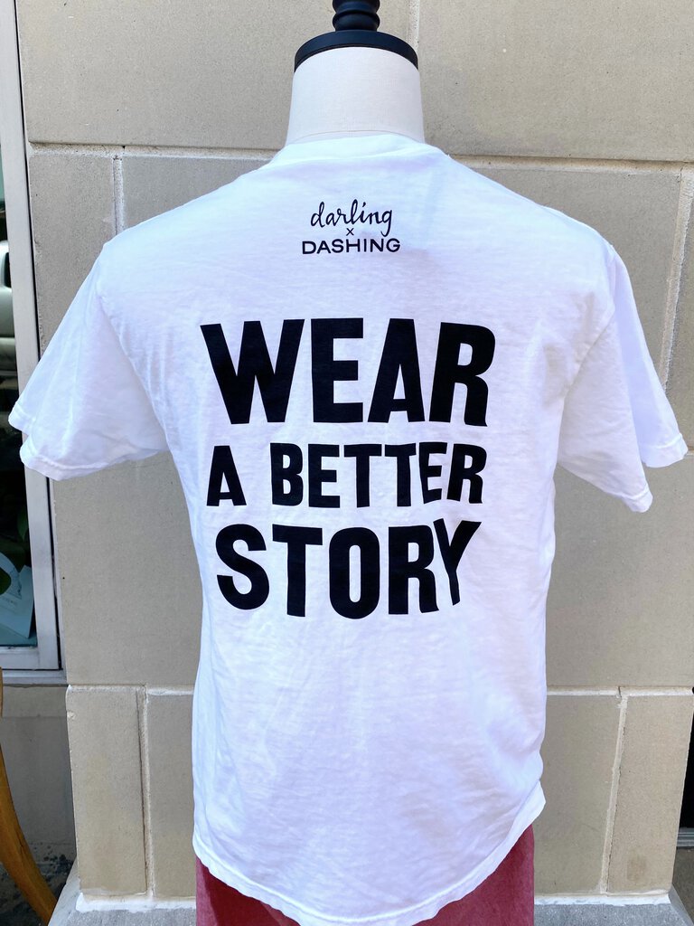 This is our unisex version of the "Future is Secondhand/Wear a Better Story" t-shirt. A portion of each sale will be donated to Fashion Revolution to transform the fashion industry for good.