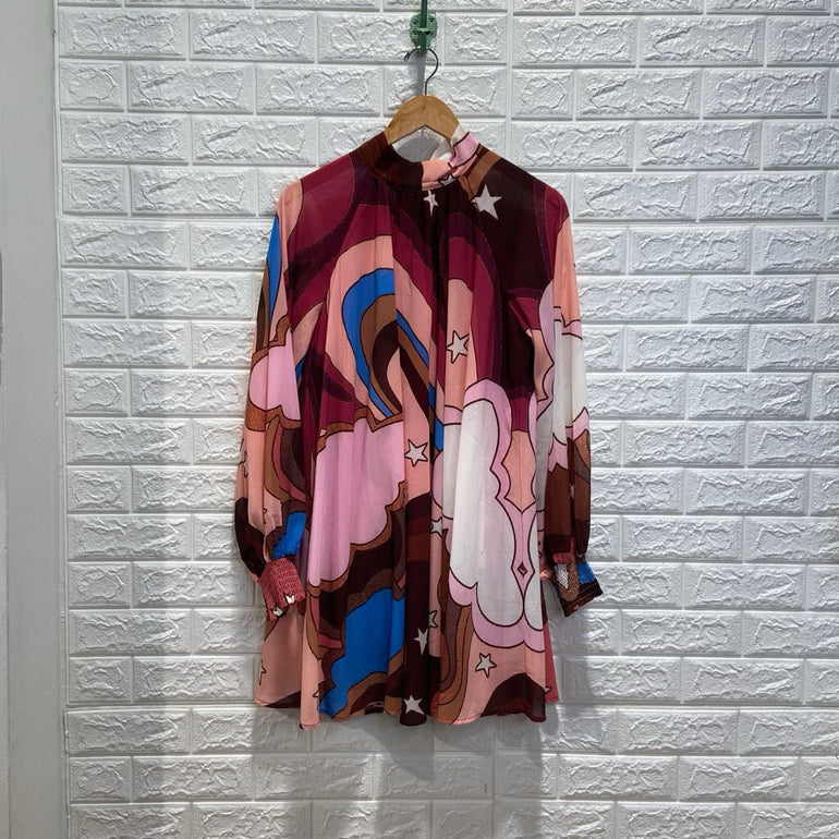 Voluminous Funky Print Long Sleeve Mini Dress