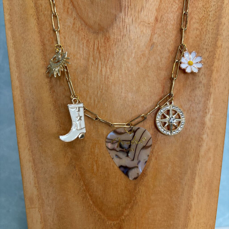 Western White Charm & Abalone Pick Necklace