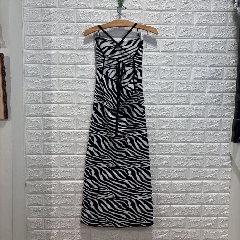Zebra Print Halter Top Midi Dress